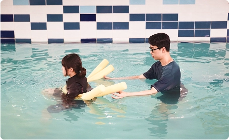 수중재활치료는 물의 물리적 특성인 부력, 점성 ,정수압, 온도를 운동 생리학적으로 치료에 이용합니다.