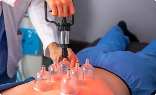 부항치료는 피부에 음압(진공)을 형성하여 국소 부위의 혈액순환을 촉진하고, 근육 긴장을 풀어주는 한방치료입니다.